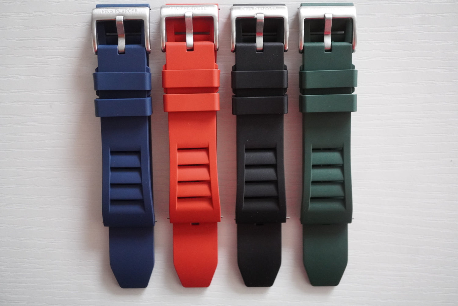 Upgrade your COMPΛSS timepiece with our premium FKM rubber straps, available in red, black, blue, and green.